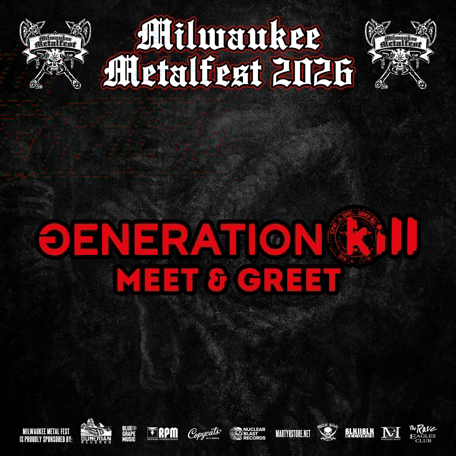 GENERATION KILL VIP M&G SAT. JUNE 6TH AT MILWAUKEE METAL FEST